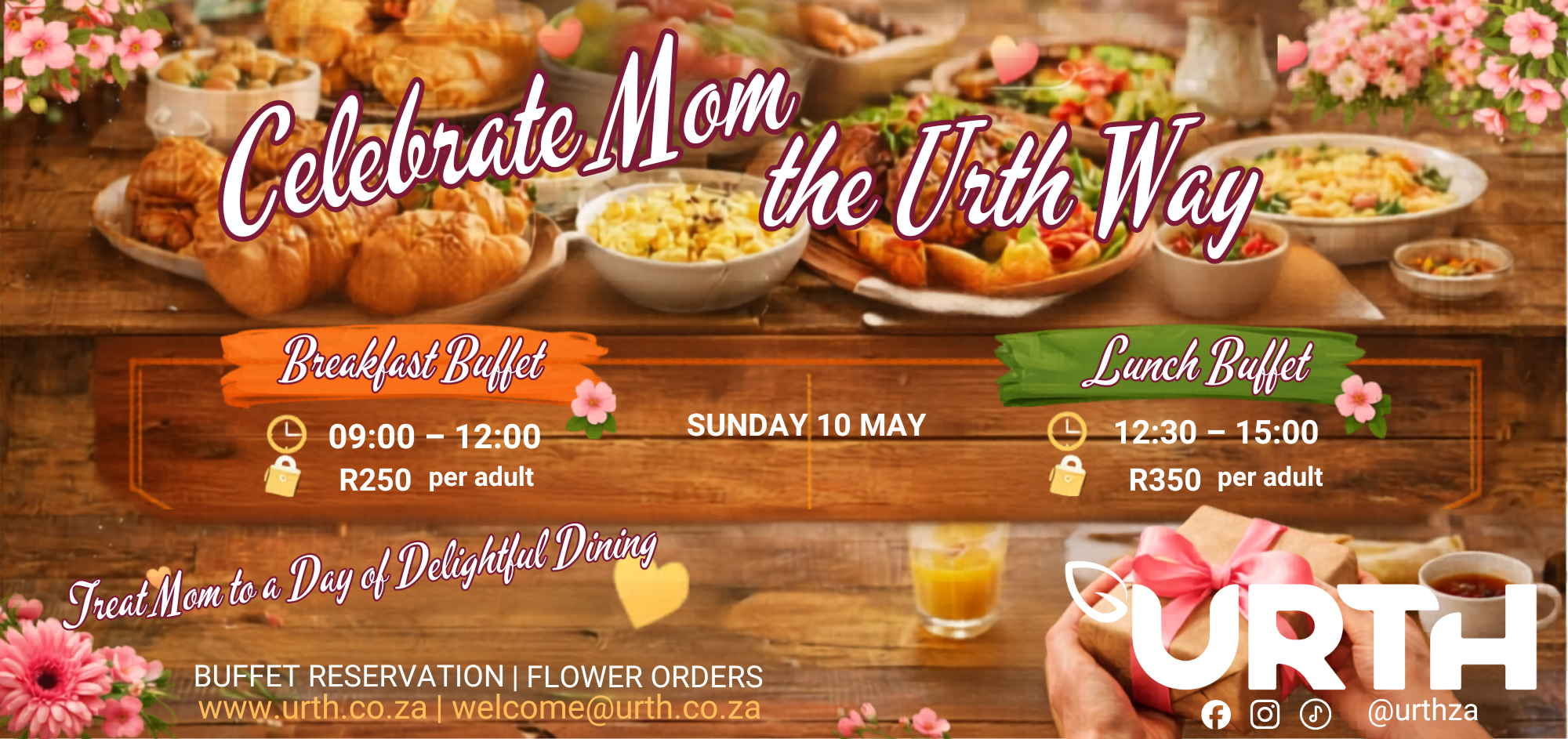 🌸 Mother’s Day Buffet at Urth 🌸 This Mother’s Day we’re serving buffet only – no Ă la carte – so you can savour it all together. 🍳 Breakfast Buffet | 9:00 – 12:00 Hot favourites: bacon, chicken livers, beef sausage, quiche, eggs & more. Sweet treats: cakes, tarts, pastries. Cold cuts, cheeses, breads, juices […]